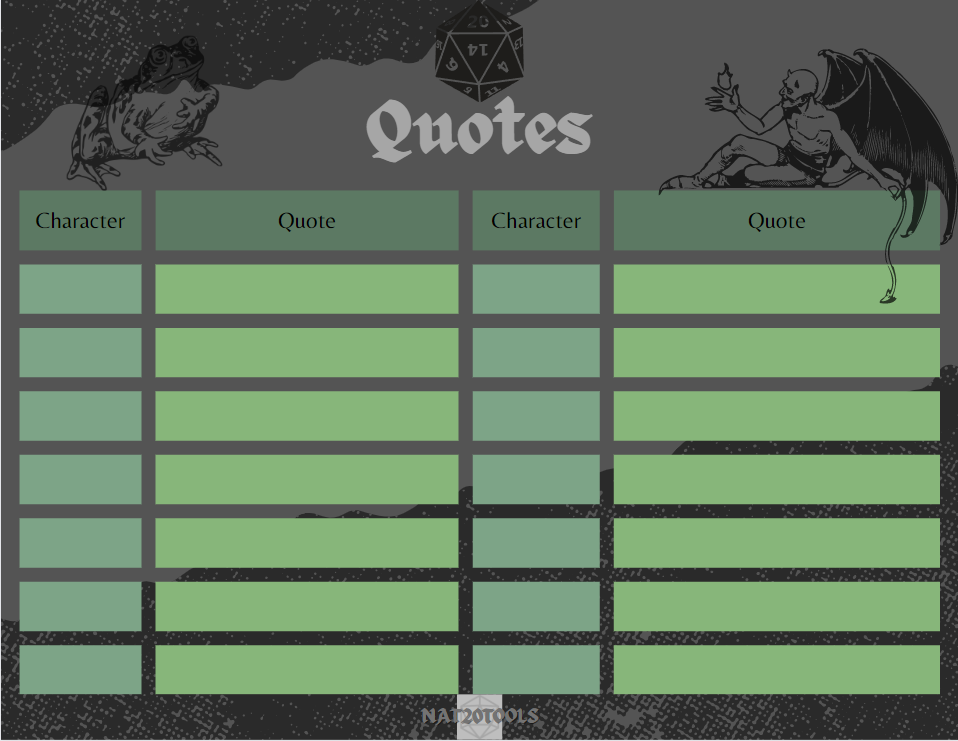 Nat20Tools is a small veteran-owned business, crafting digital tools to enhance your gaming experience. Thank you for your support!